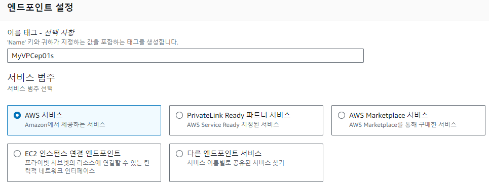 VPC Endpoint 종류에는 3가지가 존재한다 Interface Endpoint, Gateway endpoint, Gateway Loadbalancer Endpoint이다.