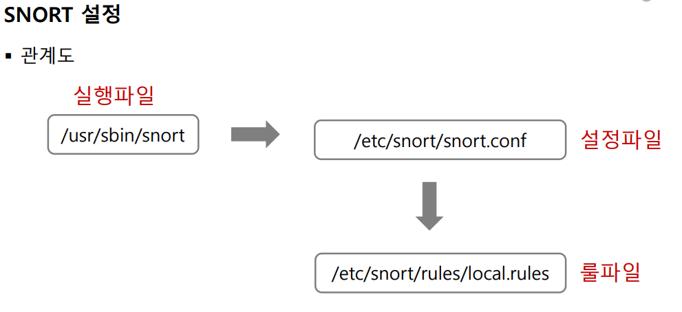 - Rule은 Rule Header와 Rule Option으로 구성되고 Rule Header는 Action Protocol , IP주소 , 포트 등으로 구성되고 Rule Option 은 탐지할 조건으로 구성됨.